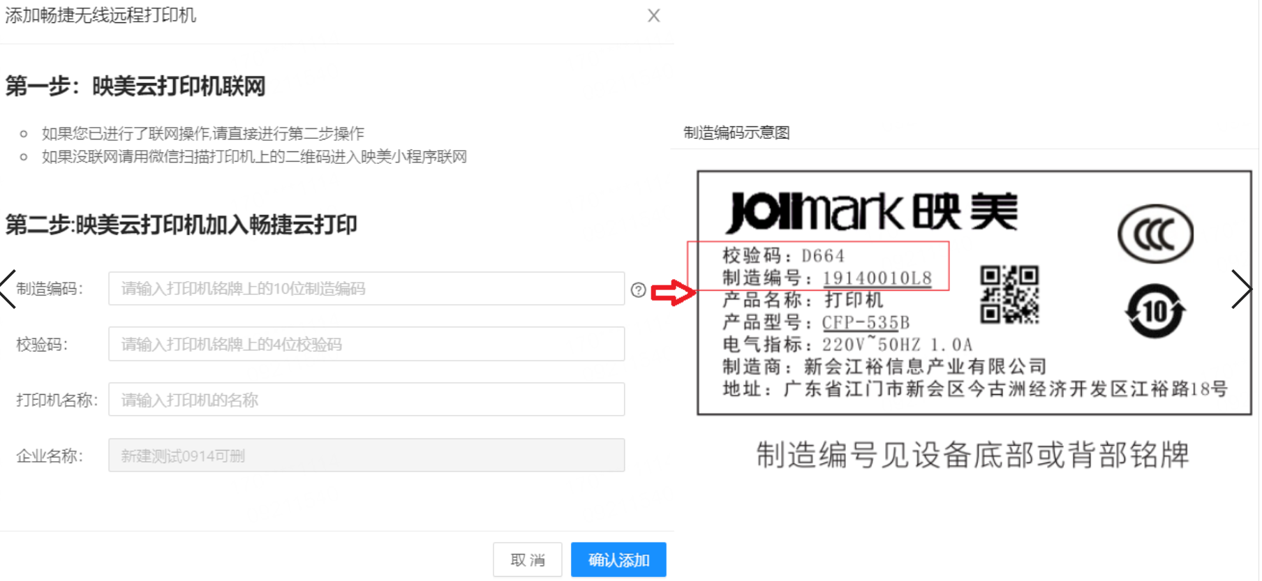 支持添加映美品牌的無(wú)線打印機(jī),為云打印機(jī)