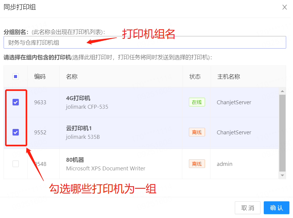 2>在同步打印組頁(yè)面,進(jìn)行打印機(jī)組命名,并勾選哪些打印機(jī)作為一組,并發(fā)打印,如圖