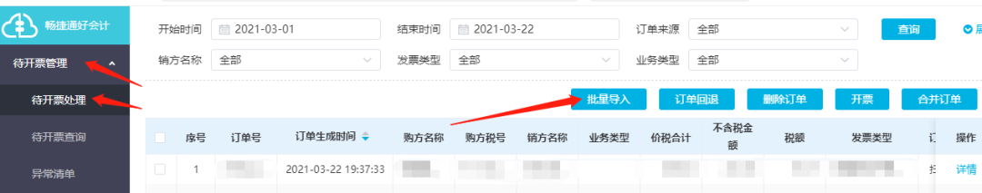 通過發(fā)票管理-發(fā)票開具開通發(fā)票開具服務(wù)后可點(diǎn)擊待開票處理-待開票處理-批量導(dǎo)入,將開票商品統(tǒng)一匯總到導(dǎo)入模板中,批量導(dǎo)入,批量進(jìn)行開票。