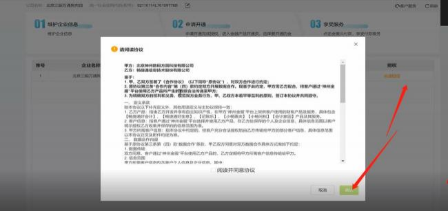 3、填寫完成后點(diǎn)擊【申請(qǐng)授權(quán)】,認(rèn)真甲乙方協(xié)議后勾選確認(rèn)。跳轉(zhuǎn)金服云后臺(tái),彈出安全 提示,點(diǎn)擊高級(jí)繼續(xù)前往該鏈接。