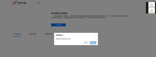 4、進(jìn)入金服云后臺(tái)后,可以看到【用友郵儲(chǔ)小微易貸】,點(diǎn)擊去申請(qǐng),申請(qǐng)頁面會(huì)跳轉(zhuǎn)實(shí)名 認(rèn)證頁面,填寫企業(yè)自己真實(shí)信息。