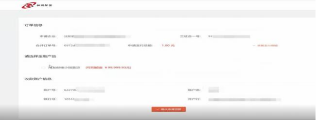 8、選擇收方對(duì)應(yīng)的銀行名稱后,點(diǎn)擊右下角的確定支付,彈出一個(gè)鏈接【請(qǐng)去下面鏈接支付】, 直接跳轉(zhuǎn)神州智行頁面,點(diǎn)擊【確認(rèn)申請(qǐng)貸款】。