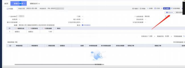 6、神州智行頁面會(huì)發(fā)起一筆支付, 等待銀行審核通過。返回原付款單,右上角顯示【付款中】, 銀行審核通過后, 付款中變成【支付完成】。單據(jù)狀態(tài)【支付中】時(shí), 單據(jù)不能再次發(fā)起支付, 也不能修改和刪除。