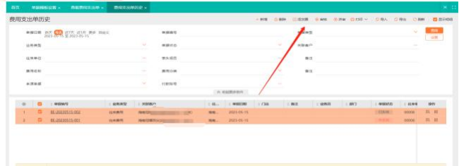 也可在費(fèi)用支出單歷史界面,勾選單張或者多張單據(jù)添發(fā)票。