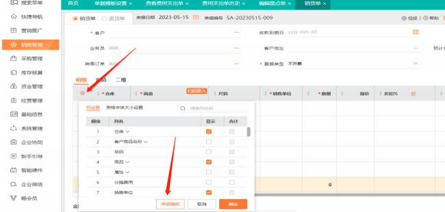 小齒輪,進(jìn)入單據(jù)模板設(shè)置頁面表體區(qū)明細(xì),可