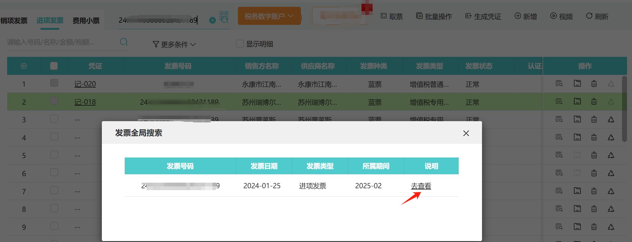 全局查找發(fā)票