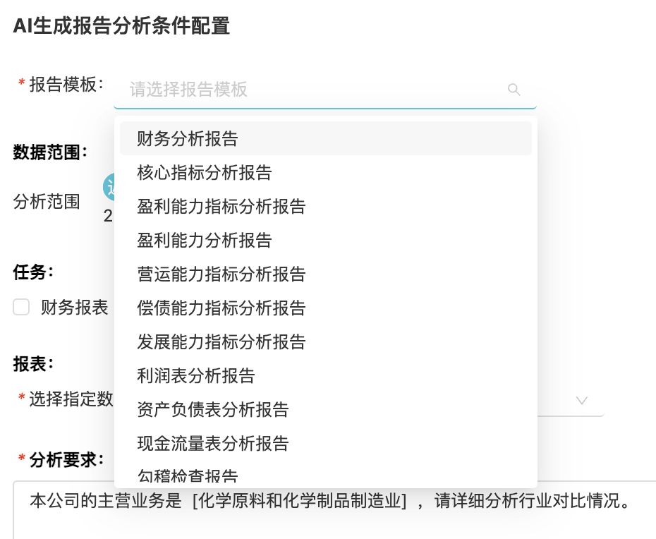 第一步:打開AI生成報告,配置生成規(guī)則