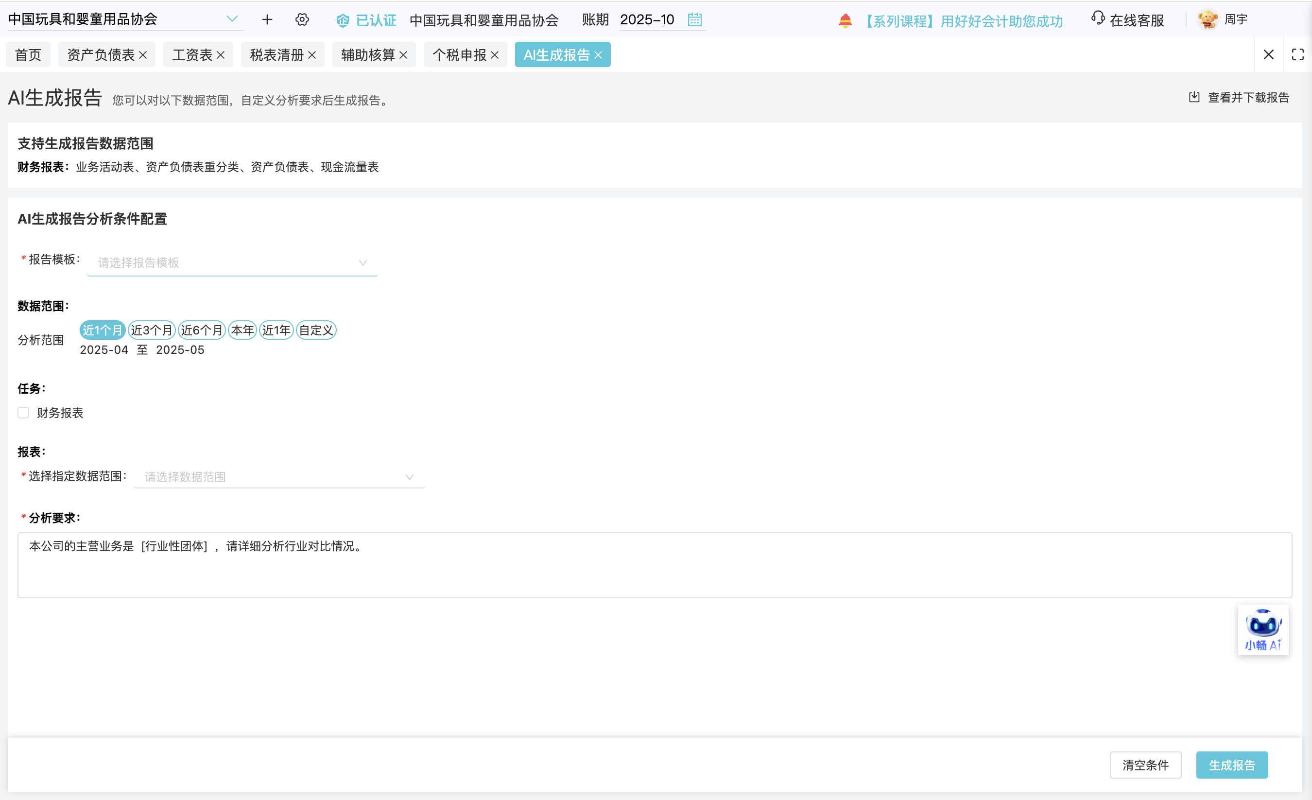 1、【小暢AI助手】生成財務(wù)報告