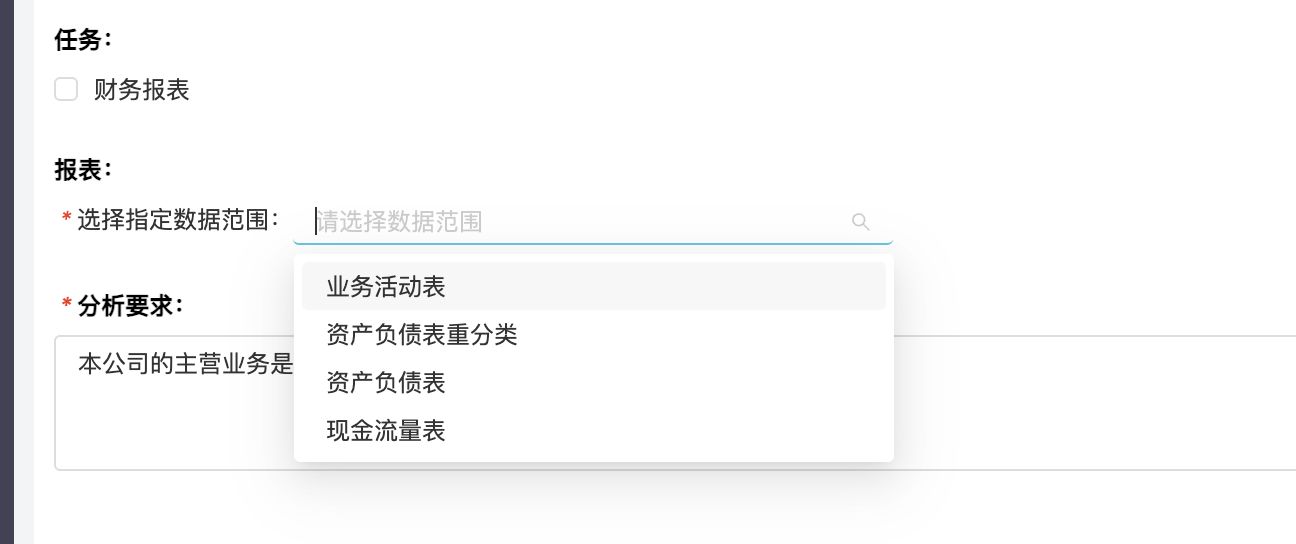 模式:對接大模型,結(jié)合財稅專家內(nèi)置不同維度規(guī)則,生成財務(wù)分析報告。
