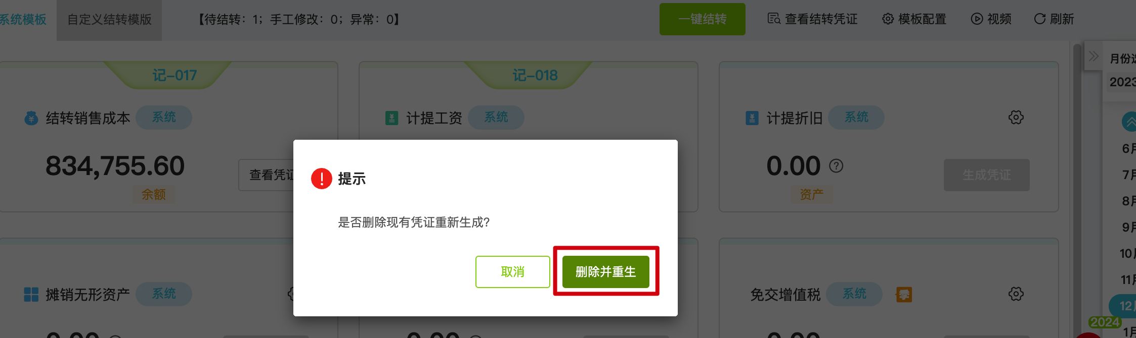 結(jié)轉(zhuǎn)損益后,一鍵結(jié)轉(zhuǎn)無需刪除損益憑證即可一鍵結(jié)轉(zhuǎn)(覆蓋生成)。