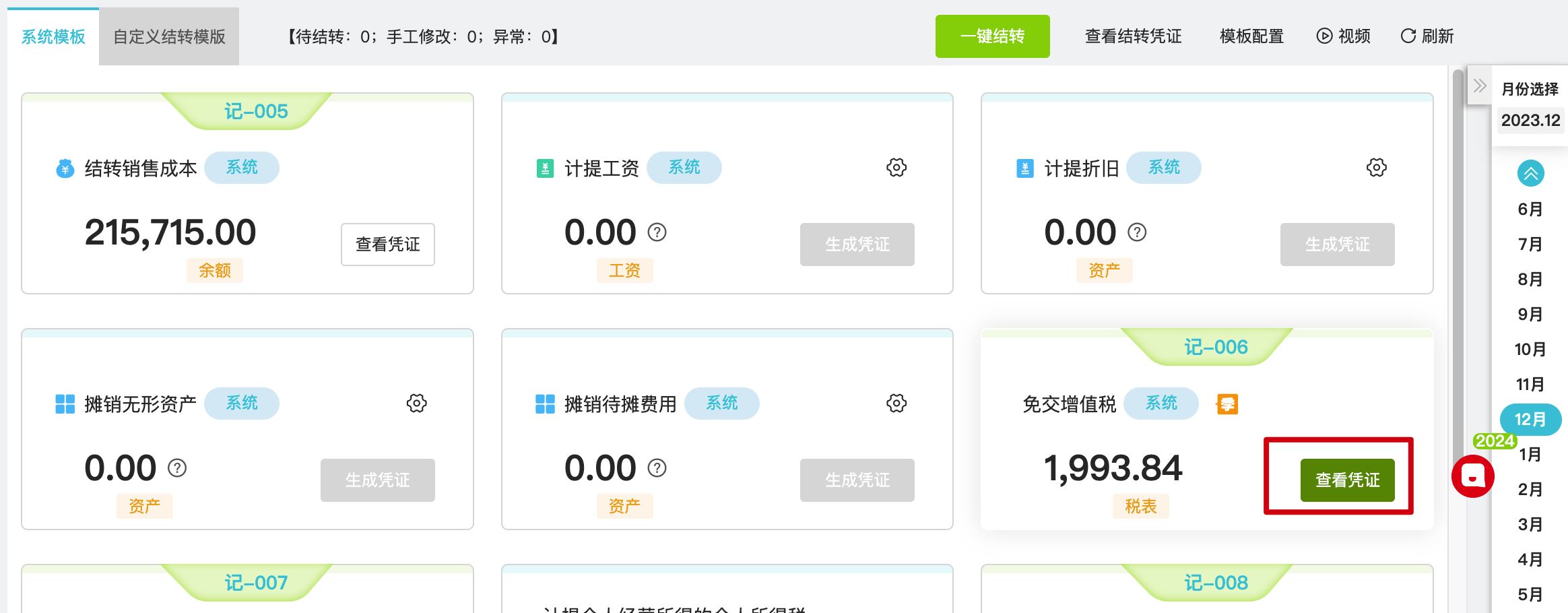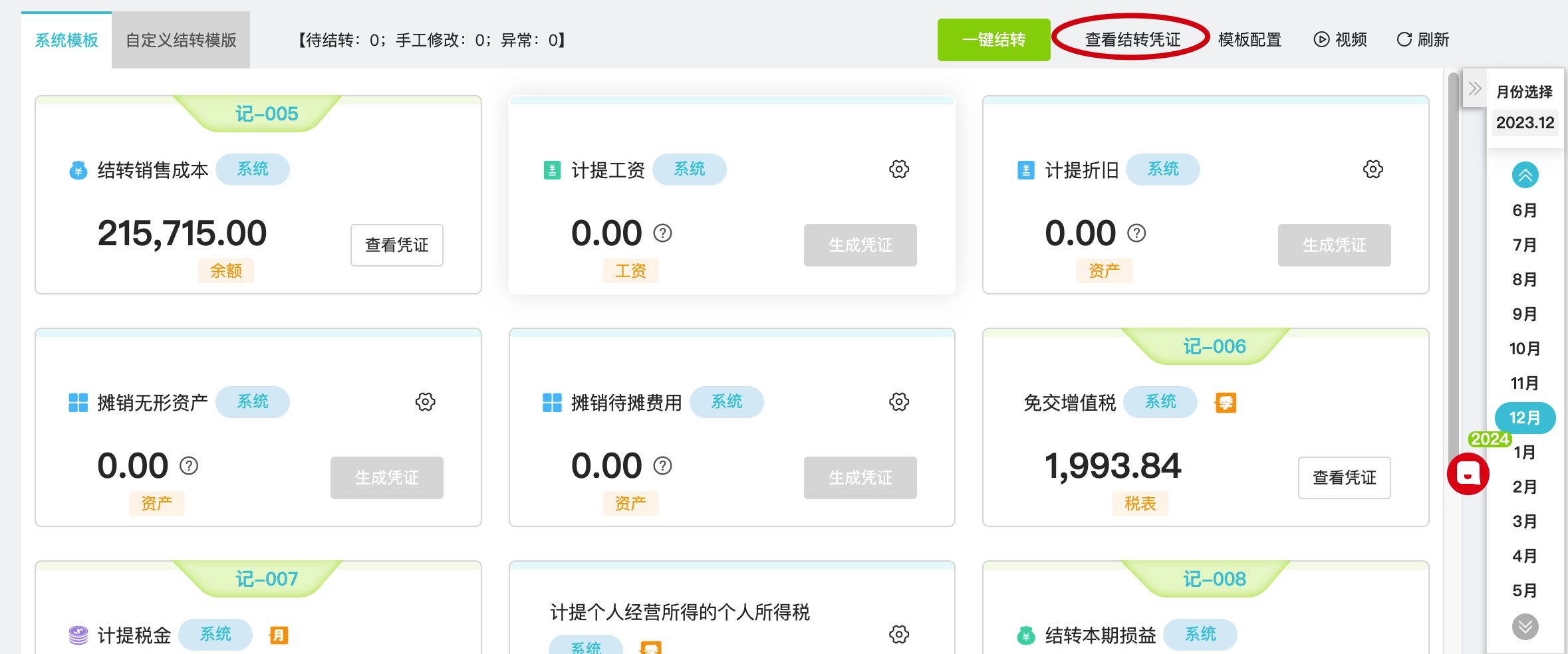 注:新版期末結(jié)轉(zhuǎn)2024年4月份上線,如果在期末結(jié)轉(zhuǎn)頁面"查看憑證"并"保存",會打上這個標記。