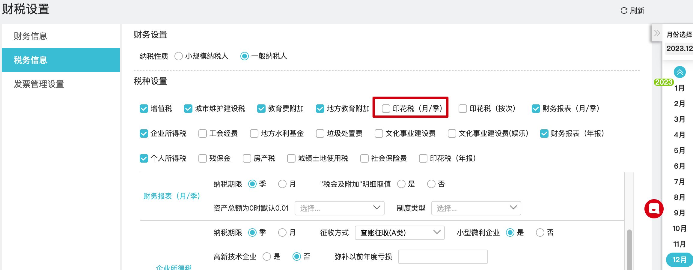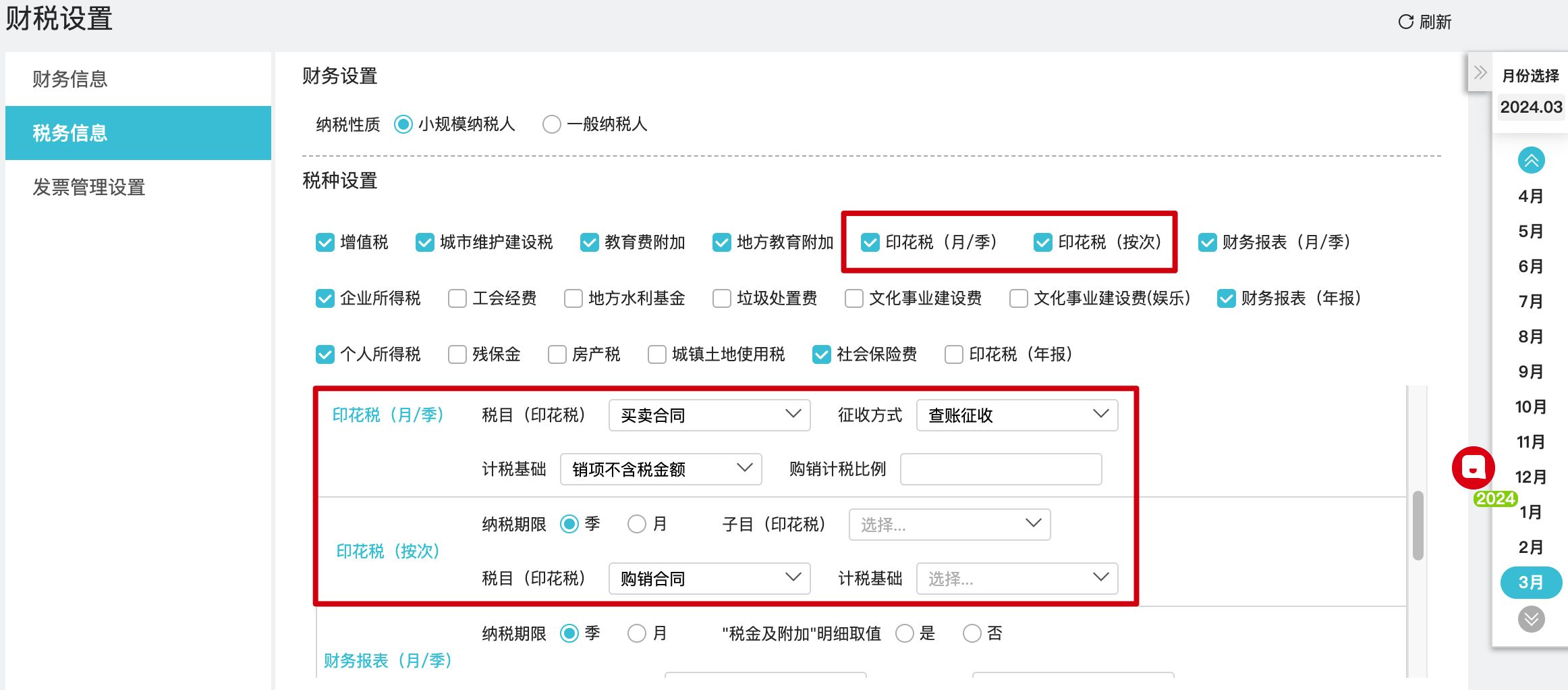 檢查【財稅設(shè)置】-【稅種設(shè)置】-印花稅,是否同時勾選了“按季”和“按次”?