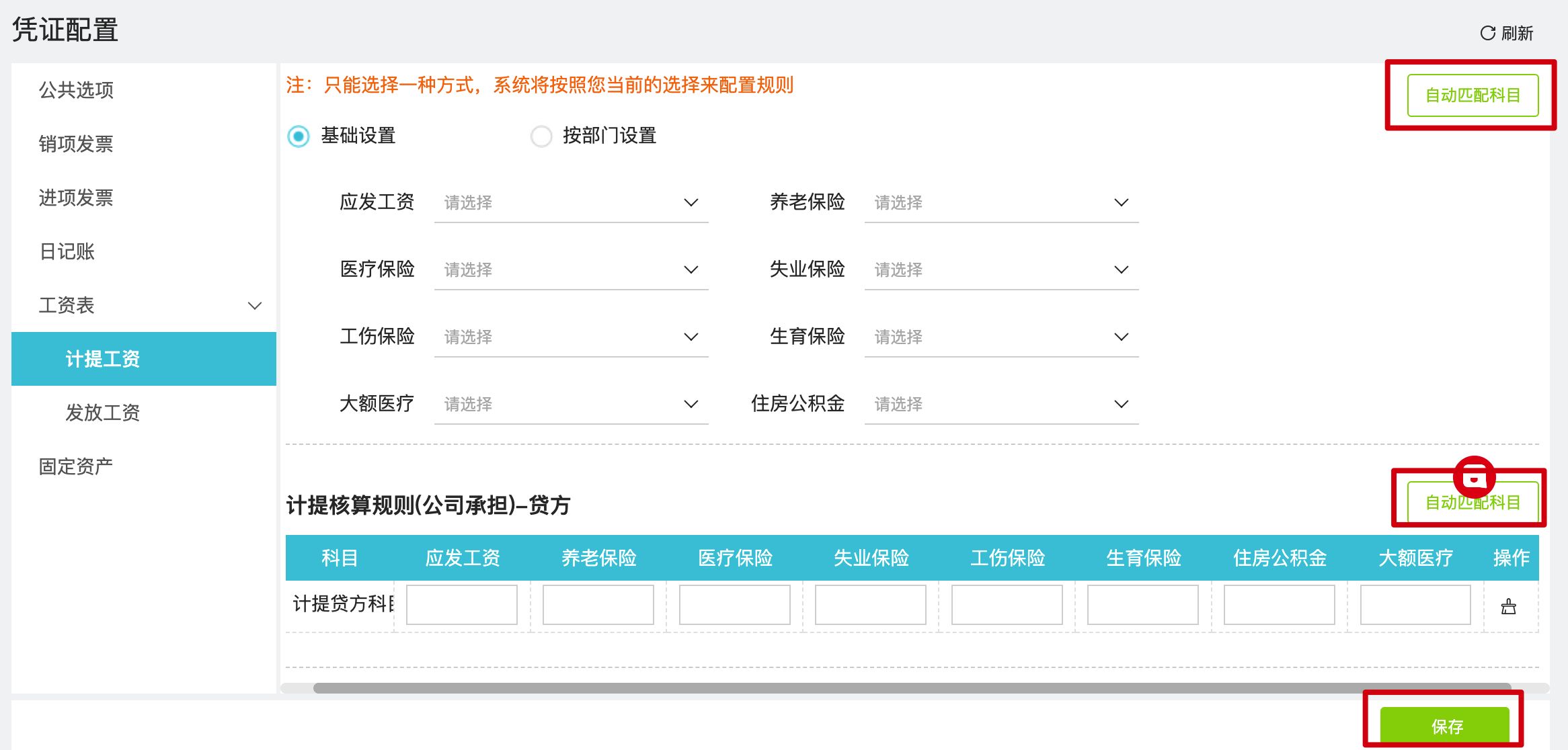 操作路徑:【設(shè)置】-【憑證配置】-【計提工資】