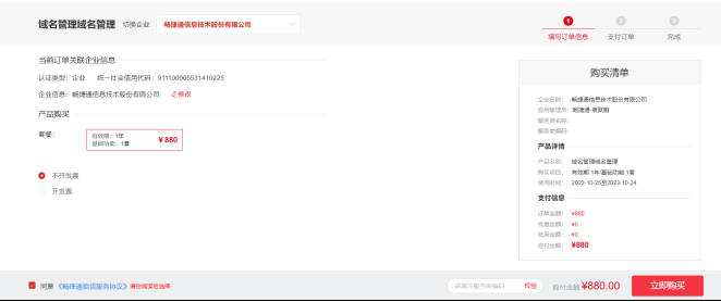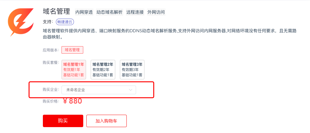2,點擊域名管理,選擇購買企業(yè),點擊購買