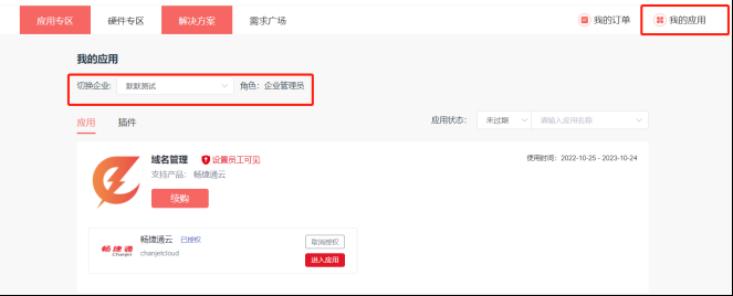 5,付款完畢后,點擊我的應(yīng)用,選擇對應(yīng)的下單企業(yè)(需要企業(yè)管理員才能在我的應(yīng)用看到購買產(chǎn)品界面)