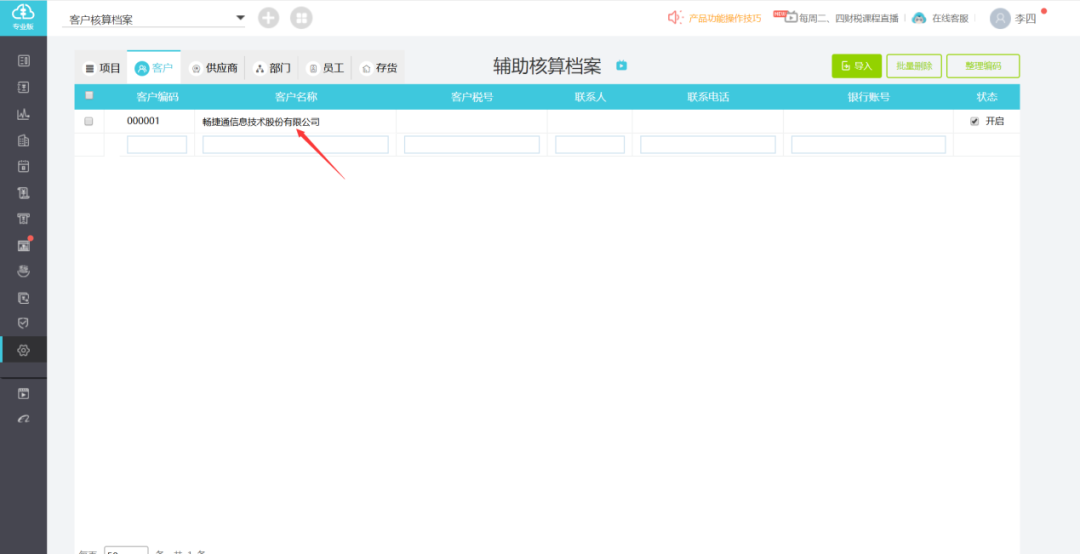 假如,某企業(yè)要按客戶核算其應(yīng)收賬款,假設(shè)該企業(yè)共有100個客戶,因此除了需要設(shè)置應(yīng)收賬款這個一級科目外,還需要在這個一級科目下分別按客戶設(shè)置100個二級科目,因而總共需要設(shè)置101個會計科目。 如果將應(yīng)收賬款設(shè)置為客戶輔助核算的話,只需要設(shè)置應(yīng)收賬款這一個一級科目,原先的100個二級科目完全可以省略,而代之以100個客戶檔案即可。用輔助檔案代替明細(xì)科目,從而達(dá)到簡化會計科目體系的作用。 那么,下面就給大家講解下4種快速添加客戶核算檔案的方法。 1.軟件左邊菜單欄點到【基礎(chǔ)設(shè)置】-【輔助核算】進(jìn)到輔助核算檔案界面; 2.選到【客戶】核算類別,輸入客戶名稱即可,客戶編碼系統(tǒng)會自動帶出,也可以手工修改編碼,客戶稅號、聯(lián)系人、聯(lián)系電話和銀行賬戶為選填項。 1.在輔助核算檔案界面右上角點【導(dǎo)入】,進(jìn)到導(dǎo)入界面后點【下載模板】,將導(dǎo)入模板進(jìn)行下載; 2.整理好導(dǎo)入模板; 3.回到輔助核算導(dǎo)入界面,點【導(dǎo)入輔助核算】選擇整理好的模板后上傳即可。 1.在錄入憑證的時候,會計科目選到掛有客戶核算類別的會計科目,點擊【新增客戶】; 2.在新增客戶界面錄入客戶名稱即可,客戶編碼自動帶出,也可手動修改。 在發(fā)票管理模塊,添加銷項發(fā)票以后,發(fā)票上的客戶名稱可以自動導(dǎo)入到客戶核算檔案中。 支持版本:好會計標(biāo)準(zhǔn)版、專業(yè)版、旗艦版。 掃碼免費使用30天 —— END —— 財務(wù)一體化方案 —— 關(guān)于暢捷通好會計 —— 暢捷通信息技術(shù)股份有限公司是用友成員企業(yè),公司成立于2010年3月,并于2014年6月26日在香港聯(lián)合交易所有限公司主板掛牌上市(股份代碼:1588.HK)。暢捷通致力于成為“全球領(lǐng)先的小微企業(yè)云服務(wù)提供商”,提供以數(shù)智財稅、數(shù)智商業(yè)為核心的小微企業(yè)云服務(wù)。目前暢捷通云服務(wù)注冊小微企業(yè)696萬家。 好會計是暢捷通面向小微企業(yè)提供的票財稅費銀檔一體化的財稅云應(yīng)用。根據(jù)易觀發(fā)布《中國小微企業(yè)云財稅服務(wù)市場專題分析2022》,暢捷通在小微企業(yè)財稅與業(yè)務(wù)云服務(wù)市場覆蓋率第一,云服務(wù)增長保持行業(yè)第一,在云財稅產(chǎn)品評分方面暢捷通好會計連續(xù)三年綜合評分位居第一。