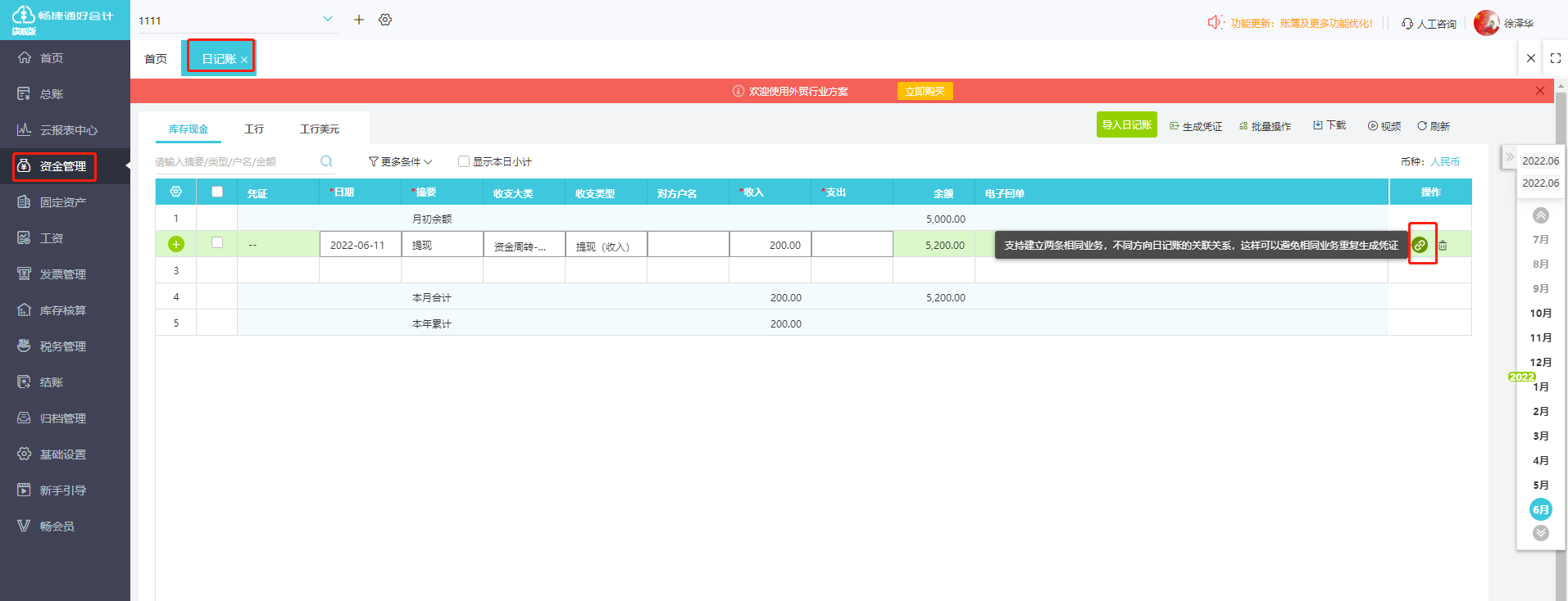 有會計客戶來咨詢,公司資金在各個賬戶之間流轉(zhuǎn),現(xiàn)金日記賬有多條記錄,一不注意就會生成多條業(yè)務(wù)憑證,批量生成憑證后到月底才發(fā)現(xiàn)帳不平,處理起來很麻煩。好會計日記賬提供了日記賬明細關(guān)聯(lián)功能,關(guān)聯(lián)完畢后,銀行日記賬就只會生成一張憑證,解決了會計的煩惱。