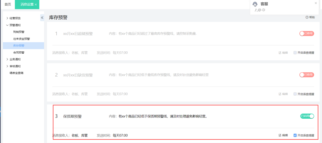 食材、調(diào)料和乳制品等批發(fā)企業(yè),都面臨商品過期引發(fā)庫存損耗、報(bào)廢問題,進(jìn)而引發(fā)利潤下滑等。更糟糕的是,如果過期食品流入市場(chǎng)很可能導(dǎo)致食品安全問題。所以,食品類企業(yè)本身希望,也有責(zé)任管好有效期。但實(shí)際經(jīng)營中,礙于商品品類、批次不同,保質(zhì)期差異都極大,傳統(tǒng)手工做賬極難管清楚、算明白,而傳統(tǒng)軟件多數(shù)缺失保質(zhì)期管理,更別提智能預(yù)警、分析等功能了。好生意保質(zhì)期管理功能,有完善的智能提醒+系統(tǒng)性記錄功能,同時(shí)能實(shí)現(xiàn)總部和門店的統(tǒng)一管理,助力連鎖餐飲效期管理更高效。總部可在PC管理端統(tǒng)一維護(hù)物料的基本檔案,如物料名稱、物料的保質(zhì)期時(shí)間。電腦端、手機(jī)端APP,可進(jìn)行有效期預(yù)警提醒,方便門店及時(shí)掌握物料使用情況,提升門店運(yùn)營質(zhì)量,減少損耗。支持自定義查詢方案;可按商品、日期、保質(zhì)期限等多種維度篩選商品;報(bào)表明細(xì)字段自定義展示、報(bào)表排序、導(dǎo)出、打印等。五、保質(zhì)期商品標(biāo)簽設(shè)置支持保質(zhì)期標(biāo)簽打印模板自定義設(shè)置,標(biāo)簽打印模板中可顯示生產(chǎn)日期與失效日期。管銷售、管倉庫、管商城、管營銷、管經(jīng)營