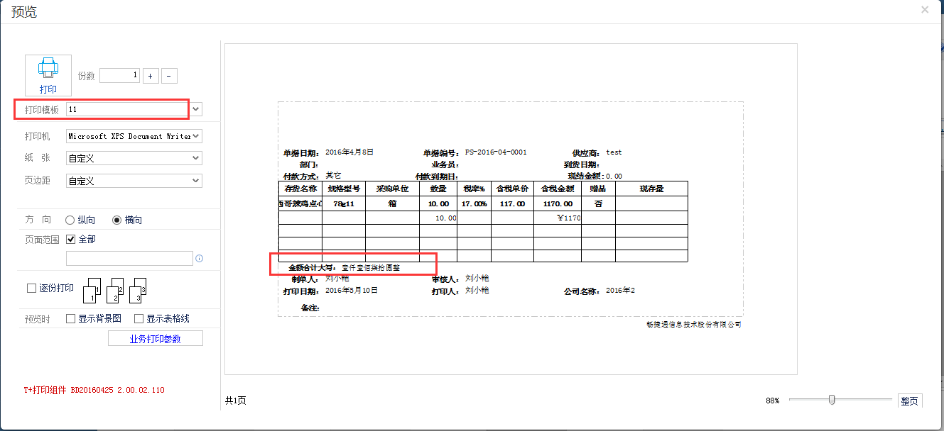 選擇對(duì)應(yīng)的模板進(jìn)行打印預(yù)覽。