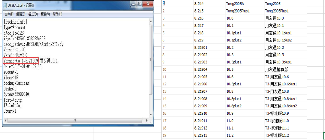 如圖:versionco_1=8.21909,對比右邊8.21909版本是10.8plus2。由此可以判斷這個備份文件是10.8plus2軟件的備份