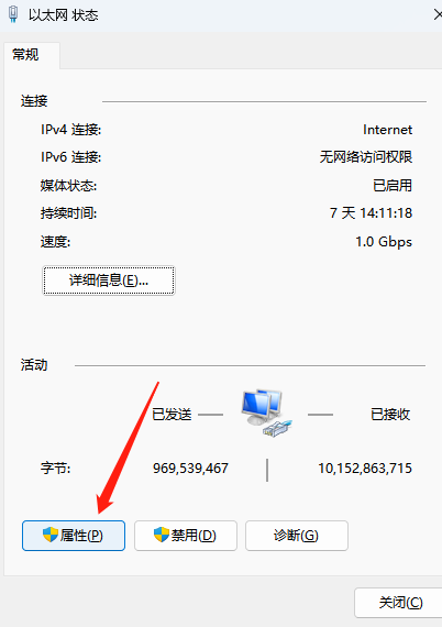 第三步. 打開連接的網(wǎng)絡(luò),打開屬性