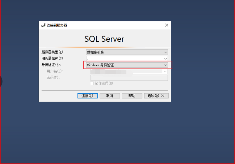 2、選擇Windows身份驗證,然后連接