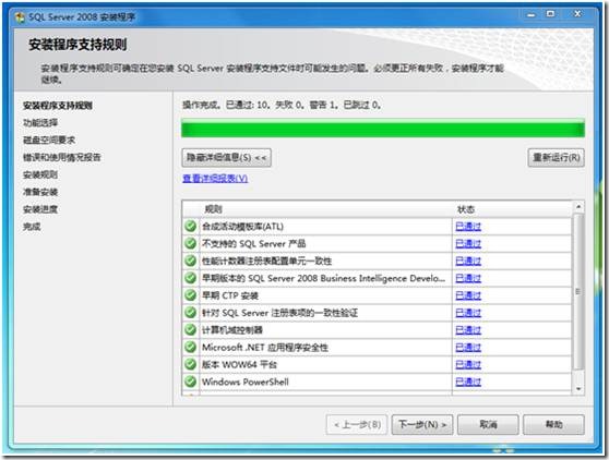 如圖1-9所示,當(dāng)所有檢測都通過之后才能繼續(xù)下面的安裝。如果出現(xiàn)錯誤,需要更正所有失敗后才能安裝。