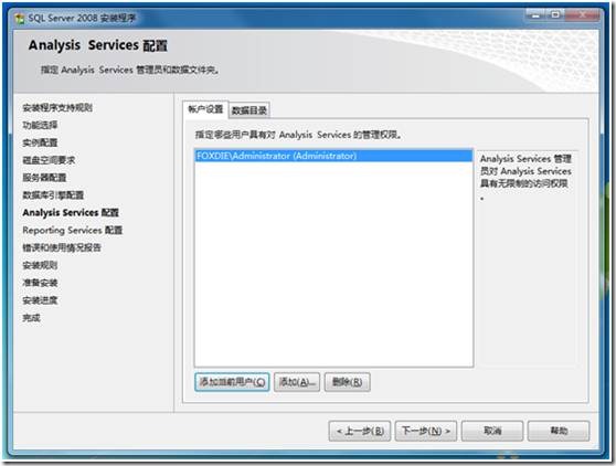 如圖1-15所示,為“Analysis Services配置”指定管理員,本文以系統(tǒng)管理員作為示例。建議:在服務(wù)器上安裝SQL Server時,安全起見為此建立獨(dú)立的用戶進(jìn)行管理。