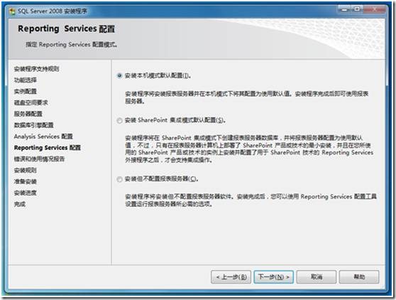 在報表服務(wù)配置中選擇默認(rèn)模式,用戶可根據(jù)需求選擇,如圖1-16所示。