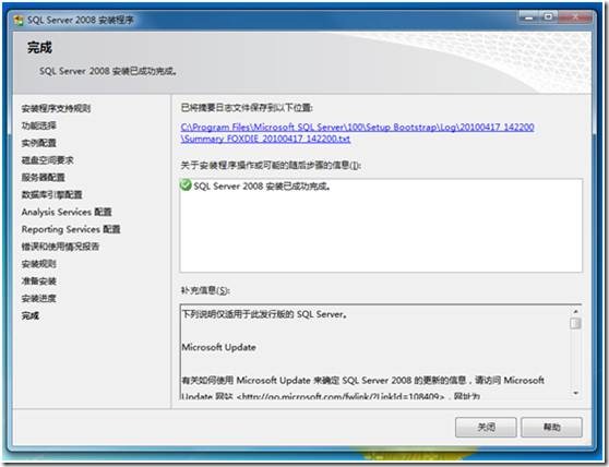 如圖1-22所示,此時SQL Server 2008完成了安裝,并將安裝日志保存在了指定的路徑下。