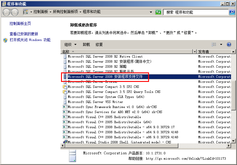 第二種可能是添加和刪除程序里已經(jīng)存在SQL SERVER 2008 R2 安裝支持文件,可能已損壞或者沒有安裝完整;