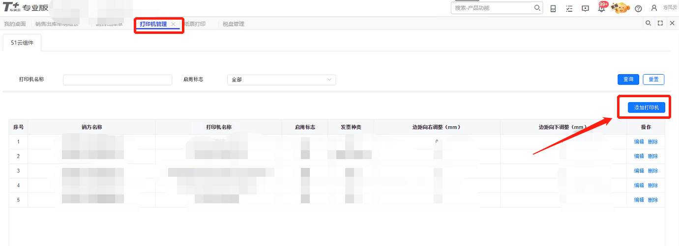 1、打開T+軟件,發(fā)票管理-【打印機管理】-【添加打印機】