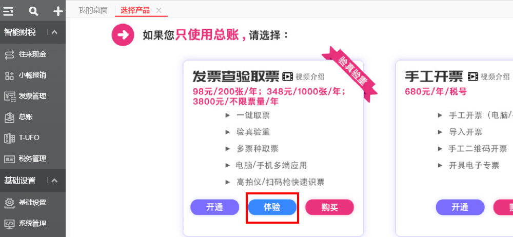 第1步:在【發(fā)票管理】--【發(fā)票】--【體驗】,進(jìn)入發(fā)票列表。