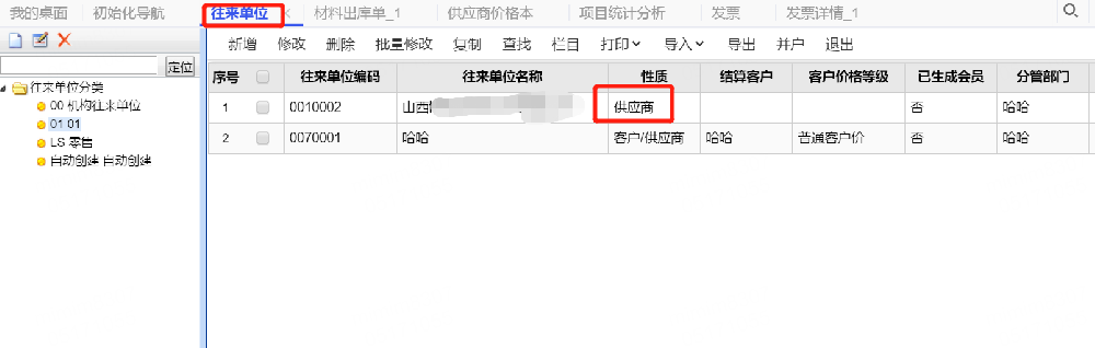 4、再次查看往來(lái)單位性質(zhì),往來(lái)單位性質(zhì),自動(dòng)變成了【客戶/供應(yīng)商】