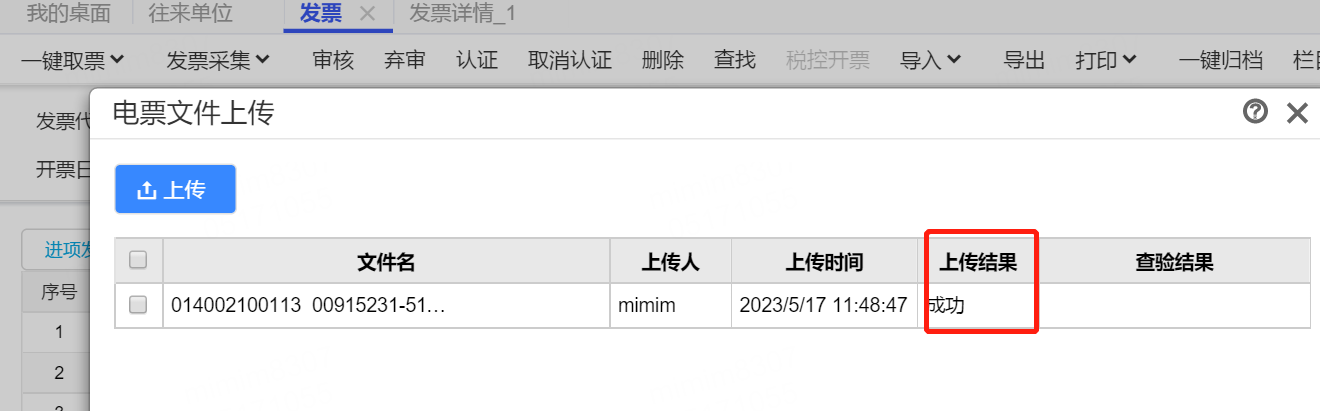 3、發(fā)票采集上傳成功