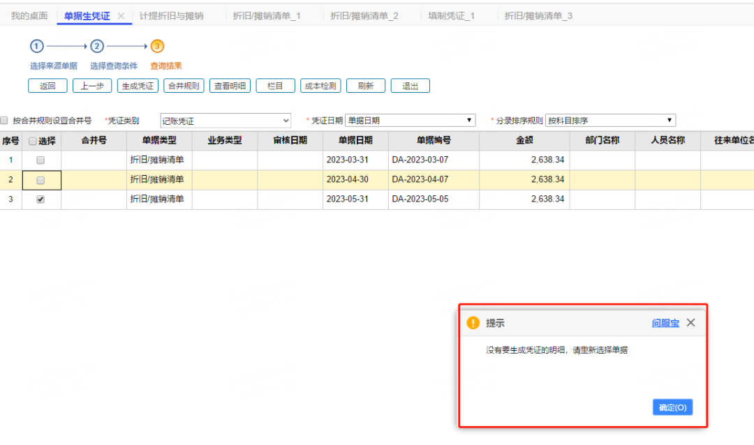 客戶單據(jù)生憑證提示:沒有要生成憑證的明細(xì),請重新選擇單據(jù)