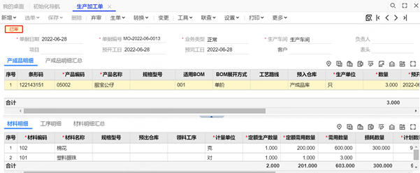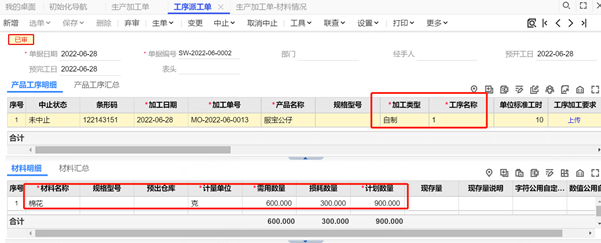 1、填制錄入生產(chǎn)加工單