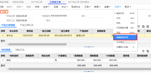 3、生成產(chǎn)品工序標(biāo)簽,打印后掃碼可以實(shí)現(xiàn)開工、完工、領(lǐng)料