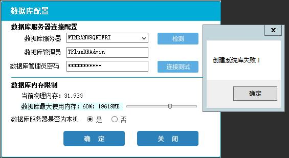 數(shù)據(jù)庫配置提示創(chuàng)建系統(tǒng)庫失敗。