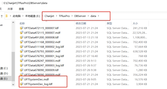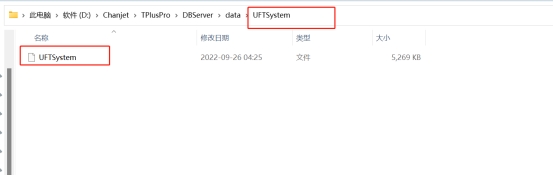 3.在軟件安裝路徑ChanjetTPlusProDBServerdataUFTSystem文件夾下缺少了UFTSystem文件。