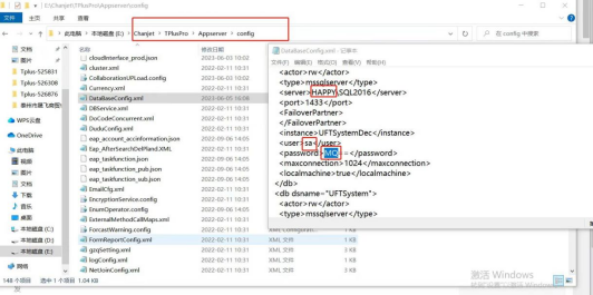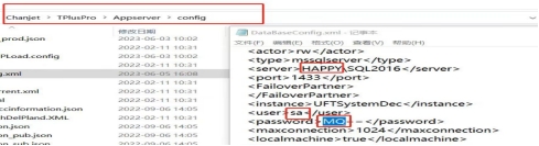 4.軟件安裝路徑下的ChanjetTPlusProAppserverconfig文件夾打開,找到DataBaseConfig用記事本打開,里面的計算機名稱、數(shù)據(jù)庫密碼錯誤了,也會導(dǎo)致創(chuàng)建系統(tǒng)庫失敗。