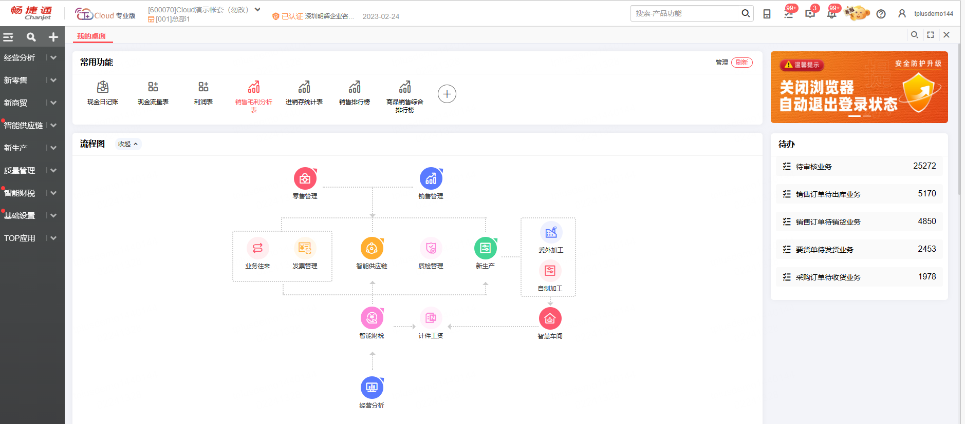 4.選擇好行業(yè)和角色之后就可以進(jìn)入賬套體驗(yàn)T+cloud了