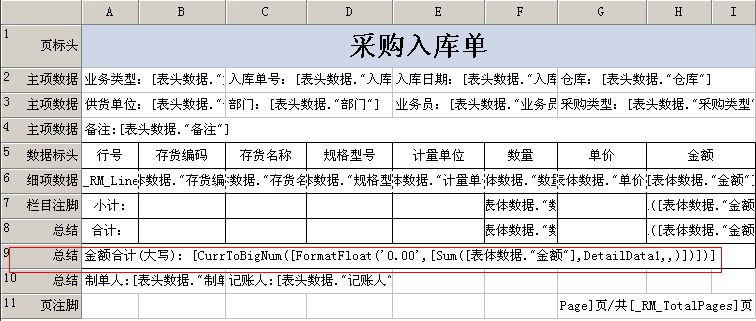 如果不想使用新打印功能,在單據(jù)格式中,也可以設(shè)置打印出中文大寫金額。