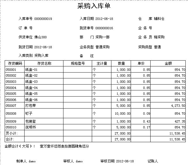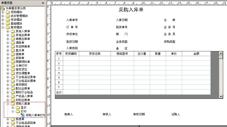 點(diǎn)擊庫存模塊-采購(gòu)入庫單-打印-采購(gòu)入庫單打印模板。