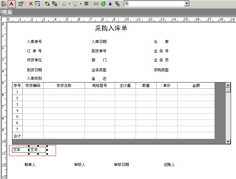 單擊“文本”按鈕兩次,并將2個(gè)文本框拖至表體下方。