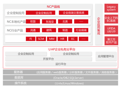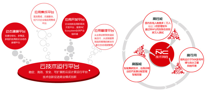 NC產(chǎn)品線包括NC核心應(yīng)用產(chǎn)品、NC行業(yè)產(chǎn)品、NC本地化產(chǎn)品以及企業(yè)客戶定制應(yīng)用等。通過集成平臺(tái),可實(shí)現(xiàn)與客戶現(xiàn)有應(yīng)用系統(tǒng)的整合。