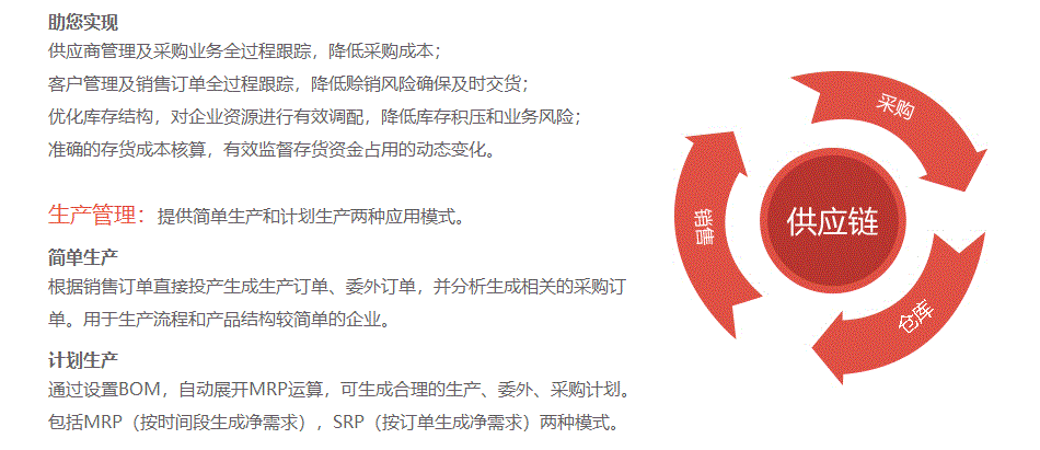 模塊組成:采購管理、銷售管理、委外管理、庫存管理、存貨核算管理。
