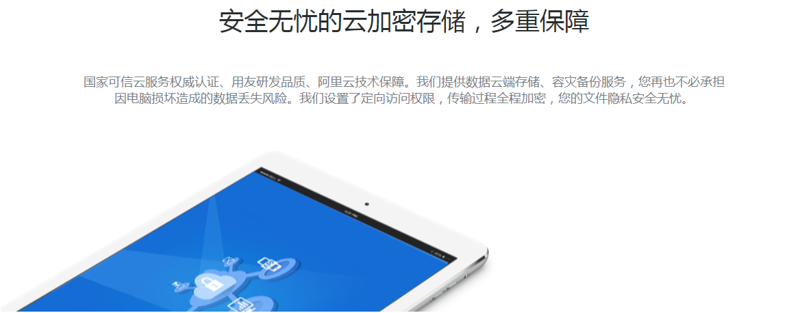 國(guó)家可信云服務(wù)權(quán)威認(rèn)證、用友研發(fā)品質(zhì)、阿里云技術(shù)保障。我們提供數(shù)據(jù)云端存儲(chǔ)、容災(zāi)備份服務(wù),您再也不必承擔(dān)因電腦損壞造成的數(shù)據(jù)丟失風(fēng)險(xiǎn)。我們?cè)O(shè)置了定向訪(fǎng)問(wèn)權(quán)限,傳輸過(guò)程全程加密,您的文件隱私安全無(wú)憂(yōu)。